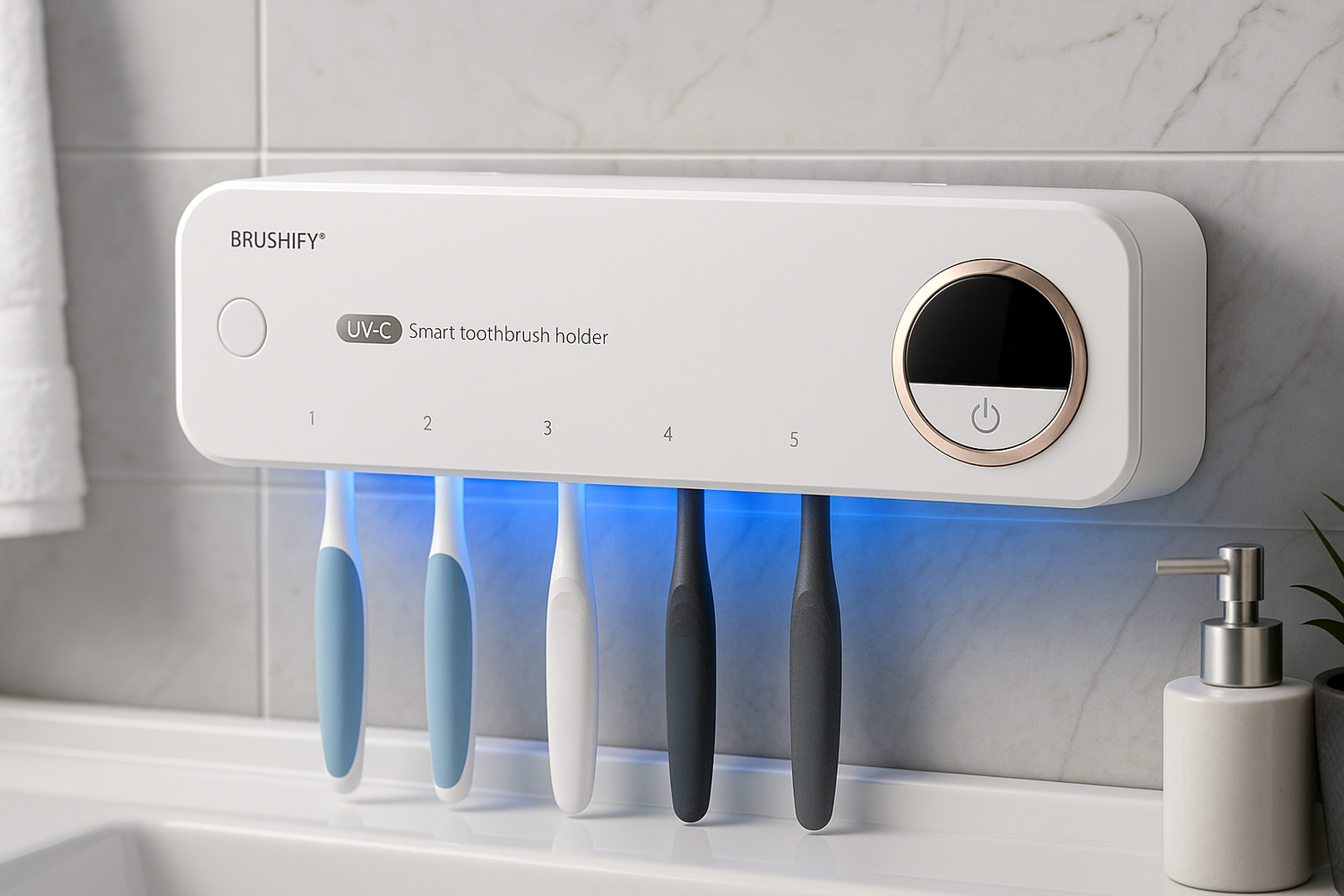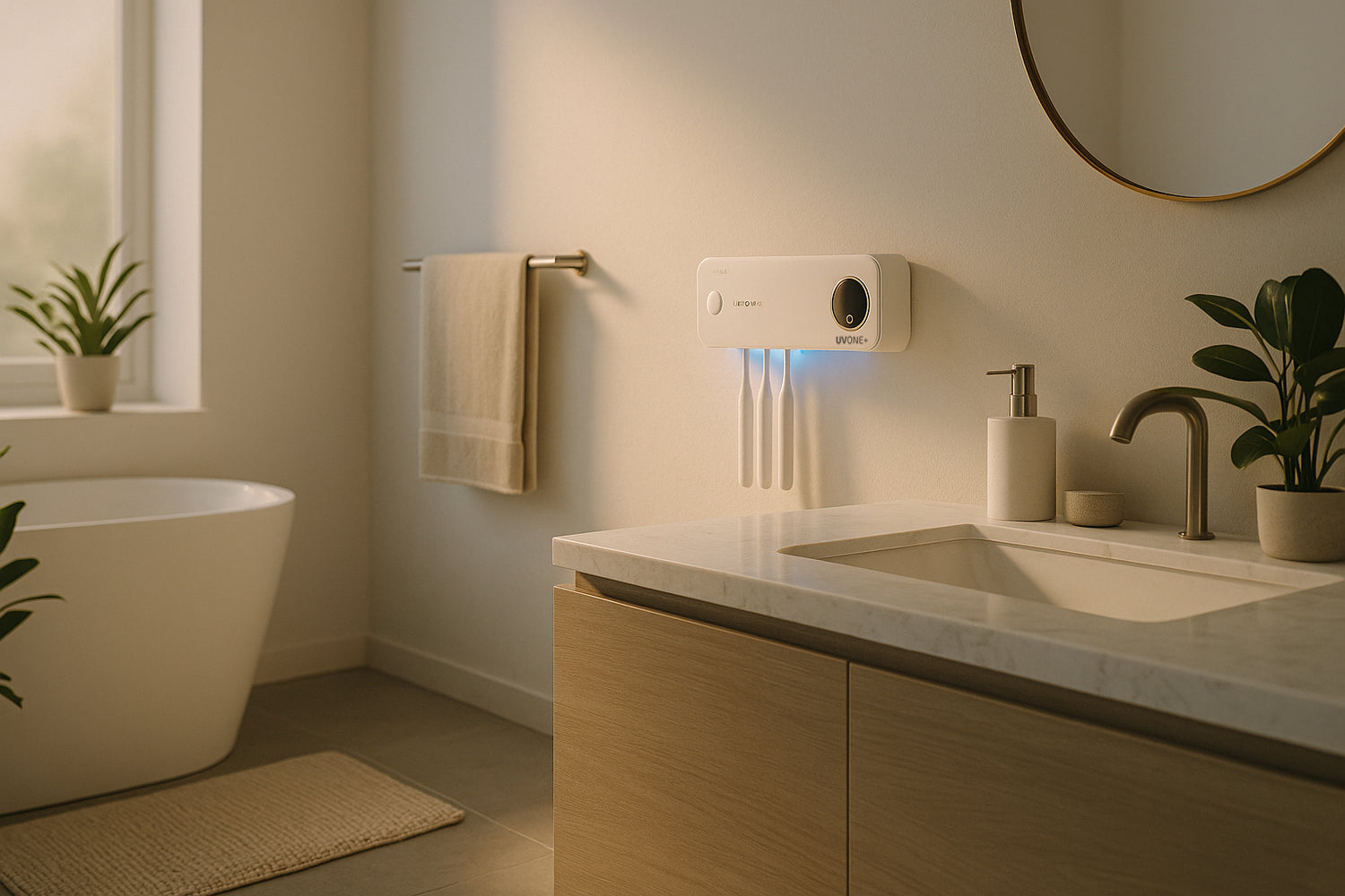Ne laissez plus les bactéries compromettre votre hygiène bucco-dentaire. UV ONE+ désinfecte efficacement vos brosses à dents et rasoirs grâce à sa technologie UV intelligente, éliminant jusqu’à 99,9 % des germes en quelques minutes. Pratique, design et facile à installer, il s’adapte à toute la famille et à tous les types de brosses. Offrez-vous une protection invisible mais essentielle, chaque jour.